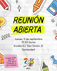 Empezamos el curso volviendo con una Reunión Abierta en nuestra sede, Eureka, y en la que os esperamos con muchas muchas ganas para seguir trabajando juntos.